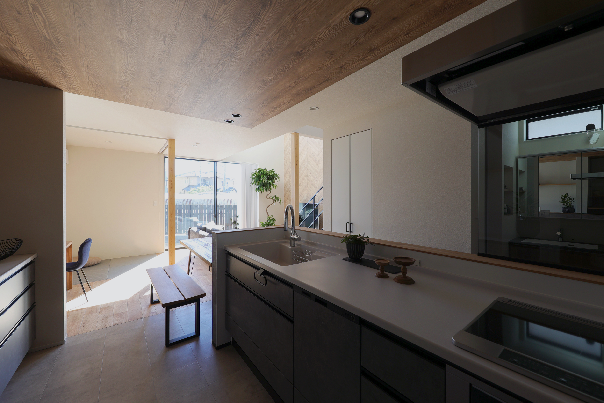 今は小上がり畳でくつろぐパートナーと会話を楽しみ、将来はお子様が遊ぶ姿を料理しながら優しく見守ることができます。