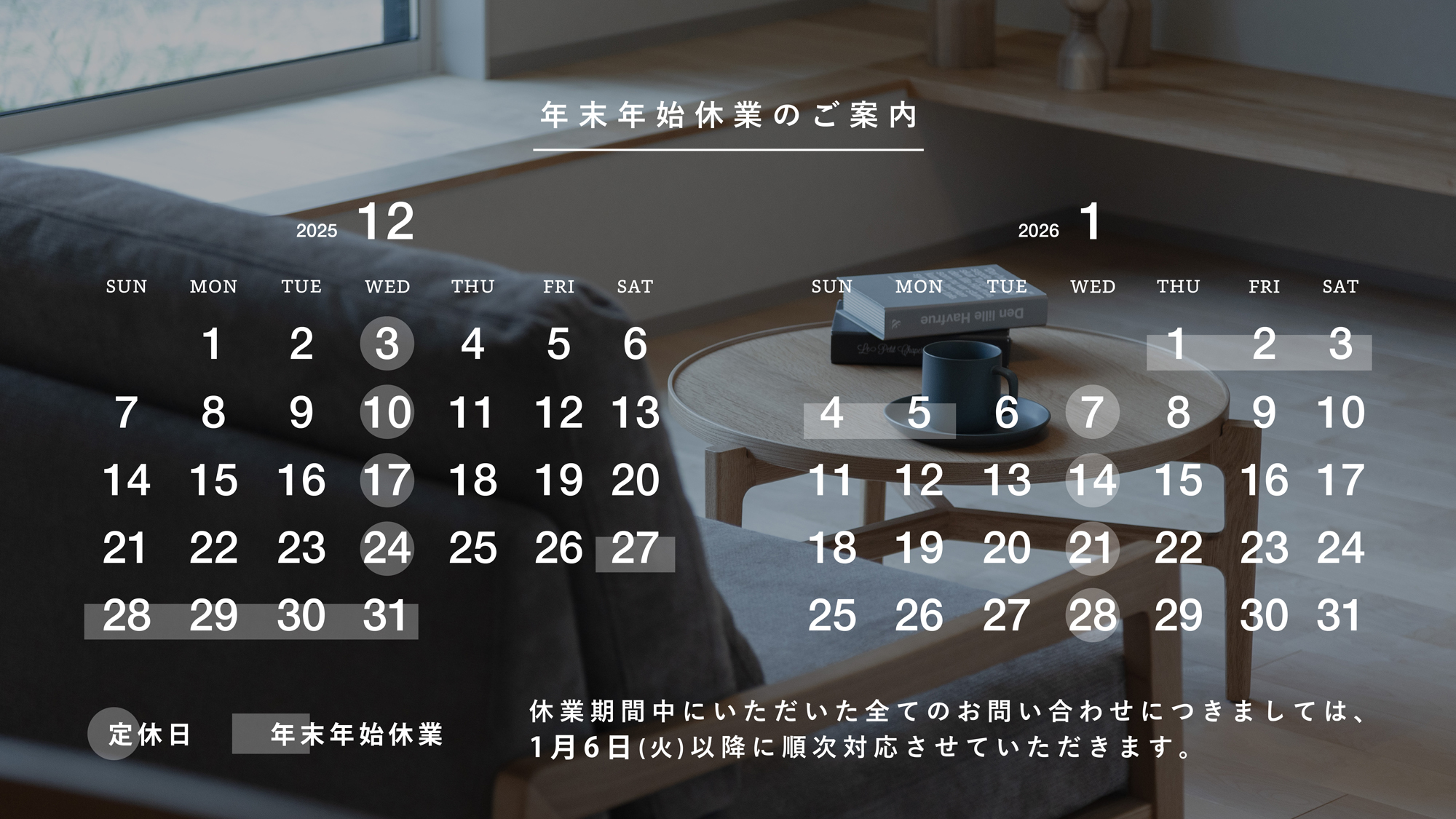 休業期間:2025年12月27日(土)~2026年1月5日(月)