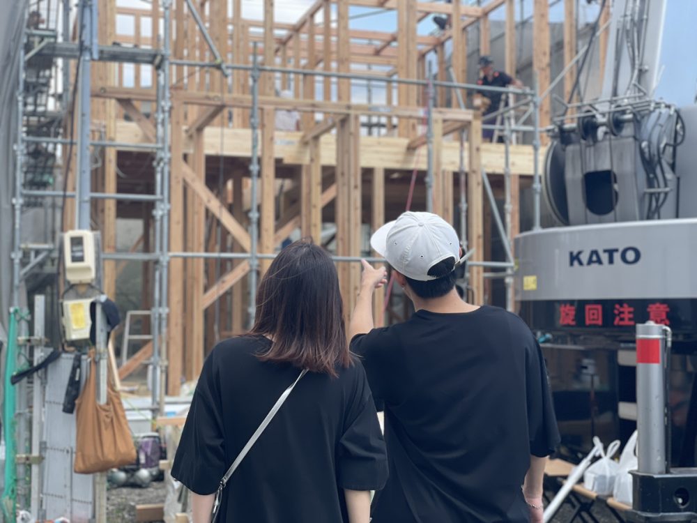 上棟は、大工さん複数人の予定や日の良い日を選ぶこともあり、平日になることが多い中で、お施主様はお仕事のお休みを取ったりしながら、一生に一度の家づくりの思い出の日に立ち会っています。