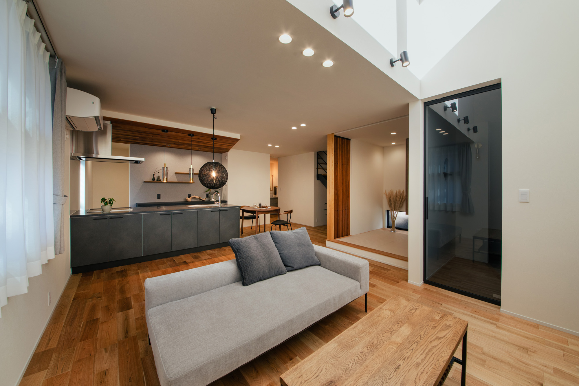 LDKには、小上がりの畳スペースをプラス。好きな姿勢でゆったりとくつろいだり、夜は家族と過ごしたりと色々な使い方ができます。
