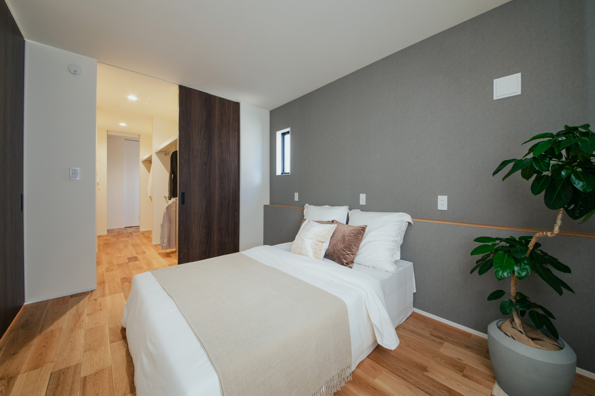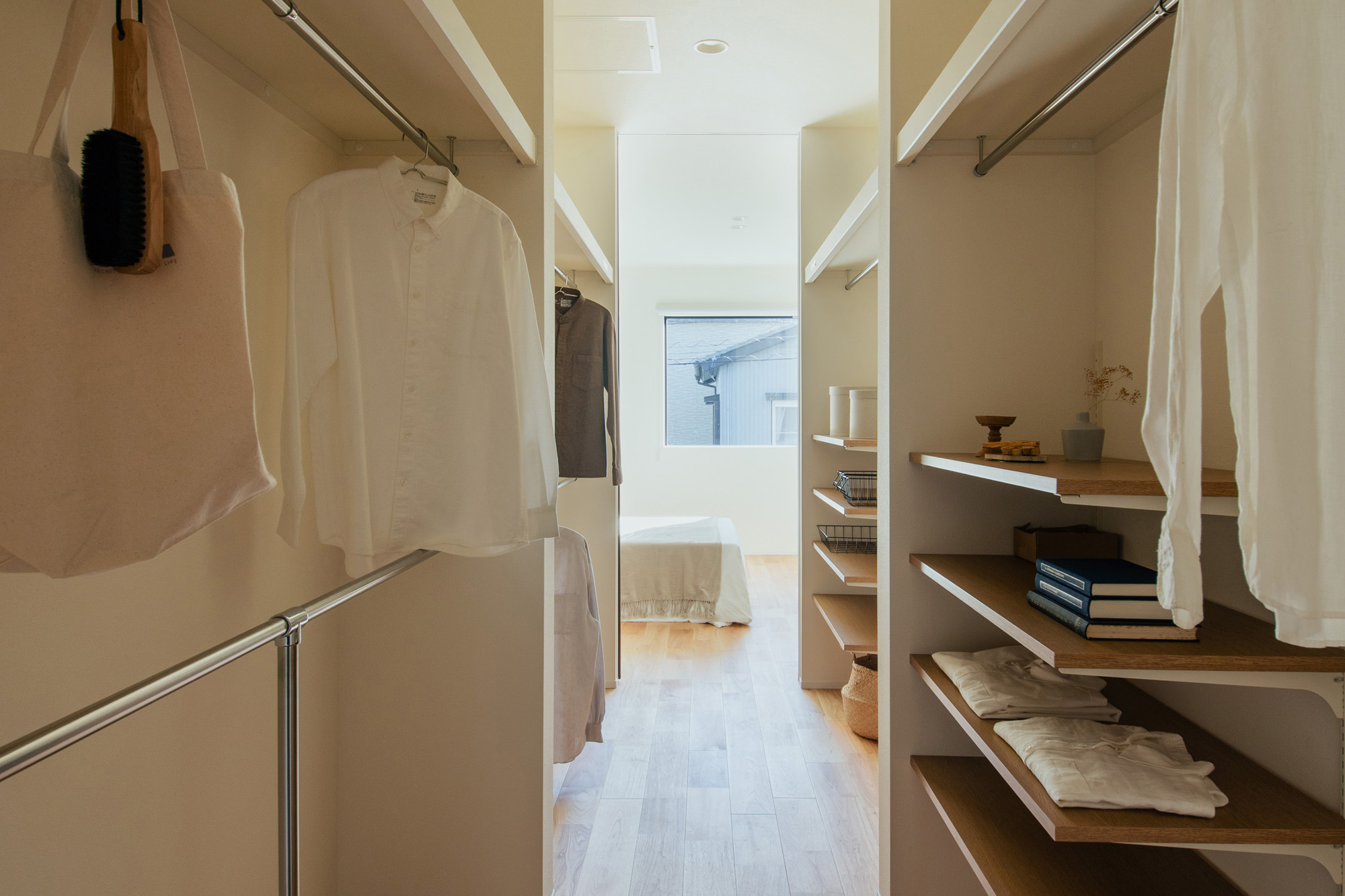 ウォークスルークローゼットを中心に、洋服や小物を効率よく収納できる設計。